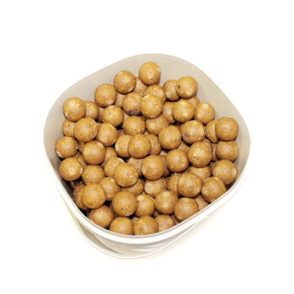 Nová unikátna rada boilies zo zmesi bez rybích múčok, s vysokým obsahom orechov, ktorú sme si nechávali na rok 2022. Túto zmes som vyskladal už v roku 2001. V roku 2021 som ,,oprášil“ recept a vyladil ho k dokonalosti. Rada nut base mix je vhodná na bahnité vody, ale aj štrkoviská, vody s výskytom sumčekov amerických, vody, kde sa často kŕmi tigrím orechom a maďarské jazerá. Jedinečnú vôňu tohto boilies dodáva kombinácia aróm kokos a krill. Jedná sa o boilies, ktoré je vyrobené výlučne na báze rastlinných a mliečnych produktov. Základ zmesi tvorí mix orechov a arašidov, kvalitné vtáčie zoby a proteíny. Zmes je doplnená najkvalitnejším konopným olejom lisovaným zo semien najvyššej kvality. Je bohatý na vitamíny, minerály a mastné kyseliny. Ryby ho priam vyhľadávajú, keďže milujú konopné semiačka.